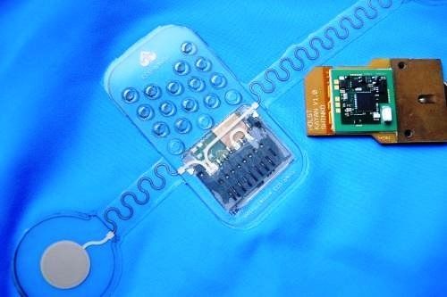 Imec/Holst开发的智能T恤,将控制电路放在一片SD记忆卡大小、可移除的电路板上,放在塑料小插袋中,透过软性导线与传感器链接