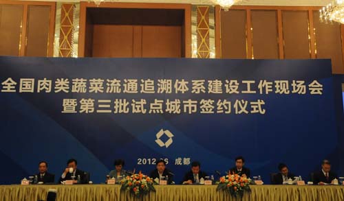 6月20日,全国肉类蔬菜流通追溯体系建设工作现场会暨第三批试点城市签约仪式在成都举行,商务部副部长姜增伟和部长助理房爱卿出席。姜增伟指出,肉菜流通追溯体系建设对提振消费者信心、扩大内需消费意义重大。目前,第一批和第二批试点城市肉菜流通追溯体系建设基本完成,后期还将继续进一步落实,包括加大肉菜追溯体系建设力度;执行统一标准,确保追溯管理平台互联互通;坚持政府指导、市场化运作,发挥企业主体作用;适时向源头延伸,打造全链条追溯体系;拓展追溯体系功能等。