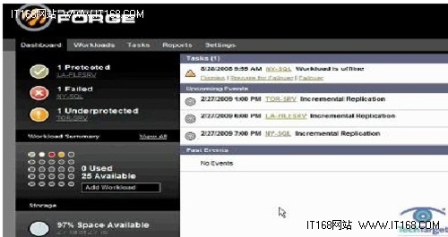 ▲图1:Novell公司的Forge设备可使用一键式操作实现工作量恢复,这个仪表板显示了你的虚拟机的主题。