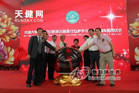 大连大学附属中山医院远程医疗监护手术急救一体车启用仪式现场。