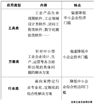 以数码大方(CAXA)与北京市计算中心联手搭建的“工业软件云服务平台”为例,该平台利用云计算技术为离散型制造业(如机械、汽车零部件、家电等行业)的中小企业提供CAD、CAE、CAPP、PLM等工业软件服务和咨询服务,以租用服务替代软件销售,降低中小企业购买软件的成本。设计者可将自己的成果提供到云端,还能通过云端分享他人的设计、标准、经验等,实现信息共享和传递。作为开放式平台,CAXA和其他企业的软件和资源都可以放到云平台上,实现生产性服务业的专业化发展(见右表)。