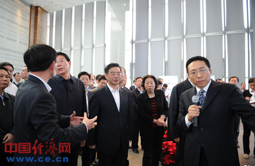 中国经济网无锡4月26日讯(记者里海) 2011年4月24日下午,湖南省委书记、省人大常委会主任周强,省委副书记、省长徐守盛率湖南省党政代表团来江苏省无锡考察访问。考察团一行在无锡物联网产业研究院考察时,刘海涛院长详细介绍了“感知中国”中心落户无锡的一年多来,物联网的标准化制定、关键技术以及产业化和行业应用等方面进展情况。