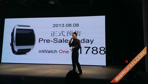 2013年8月8日,映趣科技于北京798艺术区首次举办了产品发布会,而发布会的主角就是万众瞩目的国产智能穿戴设备——inWatch One腕表。这款设备配备了双核 1.2GHz 处理器和分辨率为 240 x 240 的 1.54 英寸电容式触控屏幕。