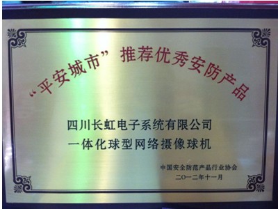 2012年12月3日,由中国安全防范产品行业协举办的2012年“平安城市建设推荐优秀安防产品”活动揭晓,长虹旗下专业高清摄像机实至名归,获得了2012年“平安城市建设推荐优秀安防产品”殊荣。