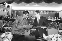 西藏山南地区扎朗县人民医院院长丹曾多吉和湘雅二院院长周胜华教授签约。王建新/摄