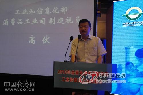 2013年6月18日上午9:00,在首都大酒店二层锦云厅举办2013年“全国食品安全宣传周”工信部主题日活动。图为工业和信息化部消费品工业司副巡视员高伏发言。