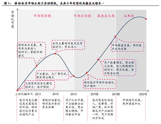 我国正迈入老龄化社会,据BCG和Swiss Re联合发布的报告预测,到2050年,60岁及以上人口将增至近4.4亿人,占中国人口总数的34%,进入深度老龄化阶段。而65岁以上老龄人口的冠心病、高血压、糖尿病、哮喘、关节炎等慢性疾病的患病率是15~45岁人口的3~7倍,造成了医疗资源的严重短缺。供需缺口为移动医疗带来了一片蓝海,而移动互联和大数据的高速发展为移动医疗的发展提供了必要条件,移动互联网与可穿戴设备的结合带来了一个全新的“智慧医疗”时代。