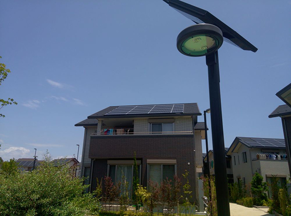 来到Fujisawa SST,人们印象最深刻的应当是其中密布的太阳能电池板。在Fujisawa SST,除了每幢小房屋顶,在公共设备的屋顶、路灯顶端也都安装有太阳能电池板。另外,在进入Fujisawa SST的南入口两侧的绿化带,也装有两整排太阳能电池板。