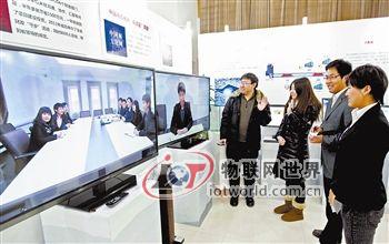 天津市首个“云计算”体验中心日前落成,配有高科技人机互动设备,参观者可亲手操作,体验“云计算”在生活中的应用。图为体验中心工作人员正在通过云计算平台为参观者演示视频会议系统。