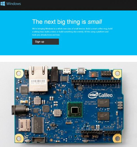 【微软推出Windows物联网操作系统预览版】微软现在开始向所有Windows物联网开发者出货英特尔Galileo主板和配套的Windows物联网操作系统预览版,并且可以在一系列第三方合作伙伴,如亚马逊,Fry s和newegg.com购买。
