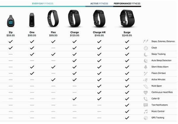 Fitbit则是另一个故事。它们的大多数产品都非常简单,专注于活动追踪,比如体育运动的周期。然而,在市场上拥有六个产品的它并没有明确的品牌定位。而且迟早要面临库存问题。Fitbit是一件时尚或者健身用品么?时尚品牌汤丽·柏琦(Tory Burch)制作的Fitbit腕带以及好莱坞明星代言似乎让它更倾向于时尚,然而Fitbit看起来并不别致圆润或者很酷。