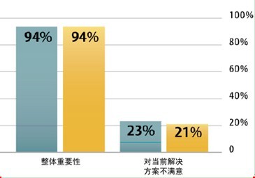 经济环境显然正迫使客户更合理开销,而公司也需要将维护、升级和投资回报率的因素纳入到成本计算中。与此同时,由于高频技术和相关的政府标准及法规要求加快推出,产品生命周期正在减缩。越来越多客户必须充分利用现有投资(根据图 3 显示,90%受访者表示这很重要,50%受访者在这方面表示不满意)。受访者还表示,他们希望解决方案具兼容性或易于迁移以及可扩展,同时可以将身份信息移植到新安全模式。