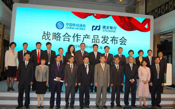 昨天,中国移动和浦发银行战略合作产品发布会在上海举行,这是继中国移动入股浦发银行后,首次公布双方在手机支付领域的合作成果----中国移动浦发银行联名卡及后期演进产品NFC手机、浦发银行代缴客户话费(代缴话费)、生活缴费及手机汇款共计四款产品。