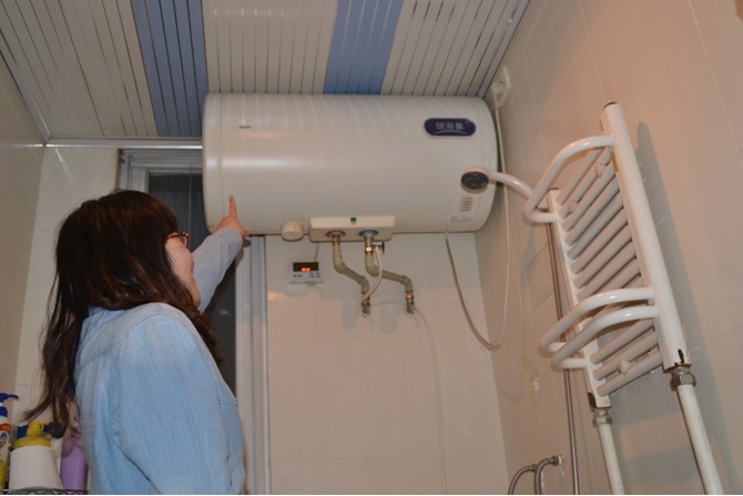张女士在海尔工作人员的介绍下购买了一台热水器,就是照片中张女士手指的这台。张女士向我们介绍说,这台热水器加热非常迅速,开机即洗。非常方便,而且还节省能源。更可贵的是这款热水器还可以防止水温过高时烫伤人,水温恒定,不会忽冷忽热,也不会使得热水过多而造成浪费。