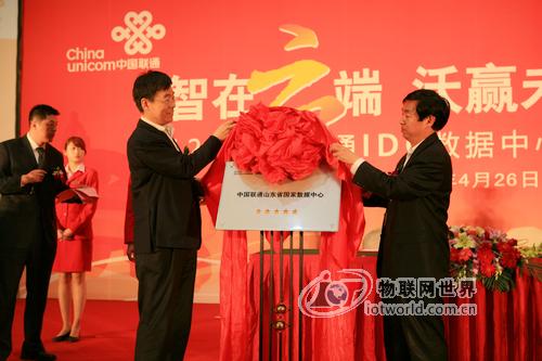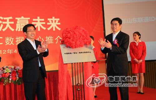 青岛市委常委、常务副市长牛俊宪(右),联通集团系统集成公司总经理孙世臻(左)揭牌