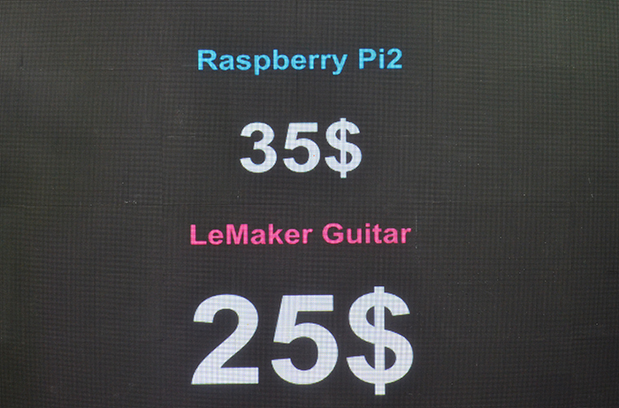张腾先生表示:“与‘Raspberry pi2’相比,LeMaker Guitar在内存性能方面提升了29%,GPU性能提升了25%,并计划以25美金的价格推向市场,使其具有前所未有的高性价比。”