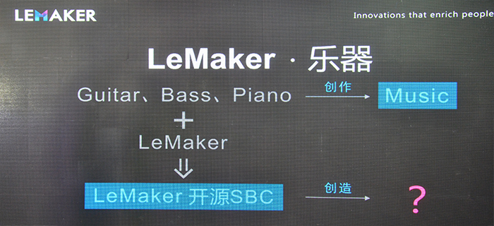 发布会现场,LeMaker科技联合创始人张腾先生介绍了LeMaker全系列SBC及配套产品,包括:LeMaker Guitar、LeMaker Bass、LeMaker Piano。