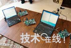 评测用板卡上安装了天线、RF收发器IC以及担负MAC控制等任务的DSP。RF收发器IC由模拟器件公司生产。