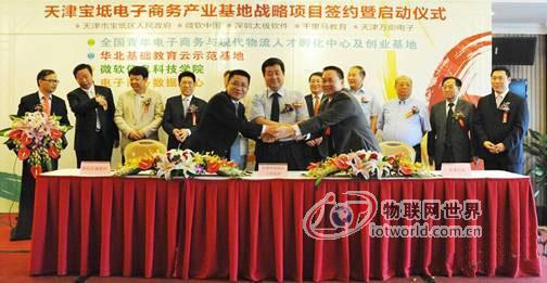 5月28日,全国青年电子商务与现代物流人才孵化中心及创业基地、华北基础教育云示范基地、微软信息科技学院、电子商务数据中心四大具有战略意义项目的签约暨启动仪式在北京五洲大酒店隆重举行。标志着天津宝坻电子商务与云计算产业基地的战略性产业项目群的建设工作已全面启动。