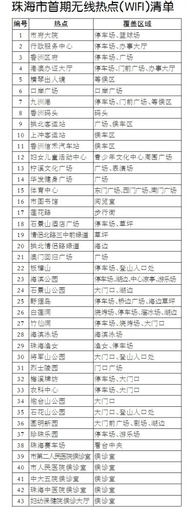 根据电信、移动、联通等三大运营商提供的数据,截至目前,珠海已建成约2000个WIFI热点覆盖区域。但这些热点绝大部分都位于星级酒店、高档写字楼以及部分政府机关、工业园区等,且除了部分免费体验活动,这些无线信号均需付费使用。
