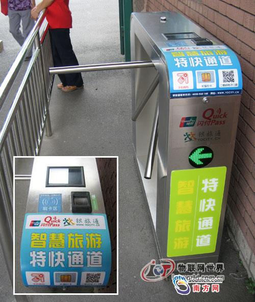 智慧旅游快速服务通道是广东银旅通信息网络发展有限公司(下简称“广东银旅通”)依托中国银联QuickPass非接触快速支付技术,支持全国各商业银行发行的IC银行卡(含带IC功能的市民卡)及移动运营商和第三方支付机构发行的NFC手机钱包。“智慧旅游快速服务通道”采用全自助式售检票服务模式,游客无需到售票处排队购换票,刷IC银行卡或手机钱包,2秒内即可完成所有付款购检票操作快速进入景区游玩,就像乘坐地铁一样方便。同时,在华南植物园使用“智慧旅游快速服务通道”还能享受8折优惠的票价,若是网上团购二维码更可享受折上折的优惠。