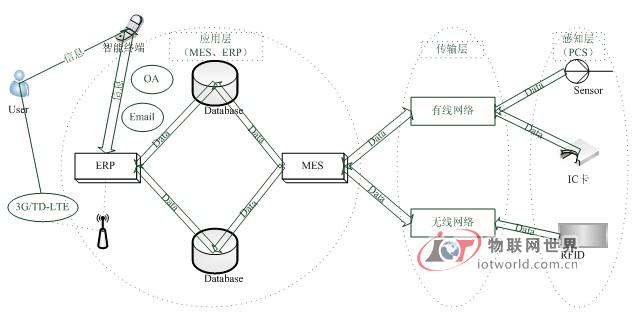 当前钢铁企业主要以三级MES以及四级ERP作为自动化与信息化建设相结合的主要接口,而当前我国钢铁企业信息化集成程度相比国外先进钢铁来说还相对较低,如在原材料的购入、入库、以及原材料使用到成品的销售的过程中,如何能够实时的跟踪记录、获取原材料所需购入的类型数量以及如何实现产量的实时调控避免造成库存量的增加,这些都需要实时的获取进货—生产—销售过程中的各种信息资源,物联网技术的提出为该问题提出了解决的可能性。