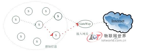 由图1可见,物联网感知层的主要设备包含有各种传感器、RFID、智能终端等,这些设备的主要功能就是完成用户或者系统所需数据的采集以及提取,如图2为常见的传感器网络拓扑图,图左边为传感器网络中常采用的一个簇结构,其中图中的S表示传感器,各个传感器间可采用自组网的方式相互连接,从而通过接入网关连接到Internet;RFID技术又称为射频标签,即带有存储器的电子标签,它主要是通过射频的方式将RFID中的信息传递给所需信息的载体或者客户,而这种信息的传递主要是通过射频间的通信完成的;而智能终端主要包含有智能手机、PDA、iPad等具有智能系统同时带有无线射频的通讯设备,用户可以通过移动网络厂商将数据或者信息远程传送到指定的Server。