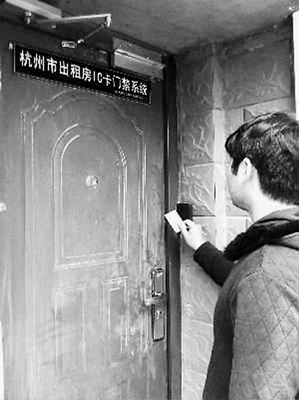 农民出租房的房客进家门,得像进出宾馆房门一样刷卡进出,一人一卡,单元电控门会自动关闭,而后道更有社区警务室的远程监控……作为杭州首个在农民出租房试点安装智能电子门禁的康桥北苑小区,实行一个月后效果如何?