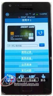 图1:大日本印刷公司开发的模仿钱包设计的“移动钱包”画面