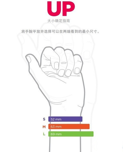 Jawbone UP2拥有缟玛瑙色、薄荷绿色、浅灰色、蓝色、藏青色、红色、橙色和森林绿色八种时尚个性的颜色可供选择,同时提供了S、M、L三种不同的尺寸,用户可以根据自己手腕的大小选择适合自己的型号进行佩戴。