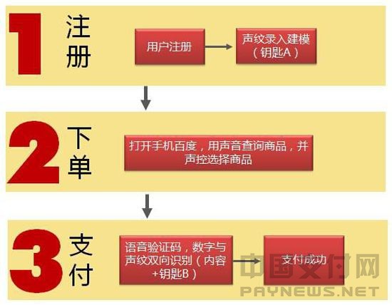 作者亲自尝试了这个产品,当你使用这一技术时,你会发现这个产品样式有些类似于iOS的Siri,想调用、查询任何应用都可以通过声音遥控实现,剥开这款声纹支付产品的外壳,它又跟Siri千差万别,用户使用这款功能时需要通声音注册,给你的声音建模,就是预先录入你的声纹作为“钥匙A“作为支付时的身份标识,而当你正常使用时,百度的应用就会辨识你声音中的关键字进行调用,而当你通过这款产品购物时,进入支付环节时,百度钱包会随机发送一串验证码,而你读出这串阿拉伯数字时,百度钱包会进行双向识别,一个是对这串验证码的识别,是否应对相同,另外一个就是声纹的辨识,此时你读数字的声音已形成”钥匙B“,百度钱包后台声纹辨识系统会将注册预留的”钥匙A“与你现在的”钥匙B“进行比对,双方相吻合则视为是用户本身的支付操作,这个支付就成功完成,由于每个人发音讲话,都是口舌、声道、鼻腔、胸肺多重配合的结果,任何两个人的声纹图谱都不相同,所以在安全性和便捷性上比手动输入密码要先进很多。